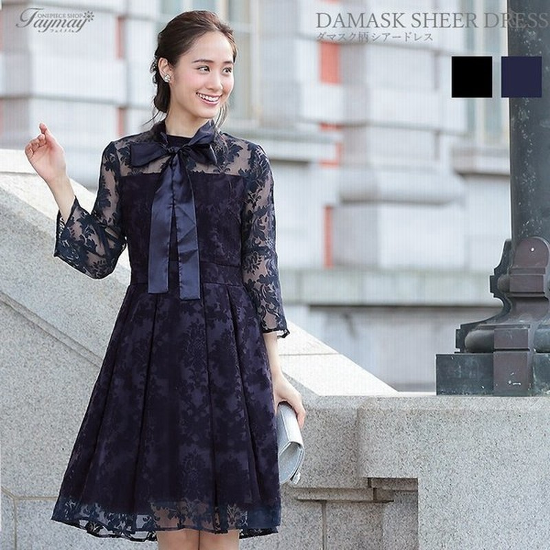 結婚式 二次会 同窓会 30代 40代 謝恩会 同窓会 服装 顔合わせ ワンピース ダマスク柄 シースルー 七分袖 大人 パーティードレス 結婚式 二次会 春 夏 通販 Lineポイント最大get Lineショッピング